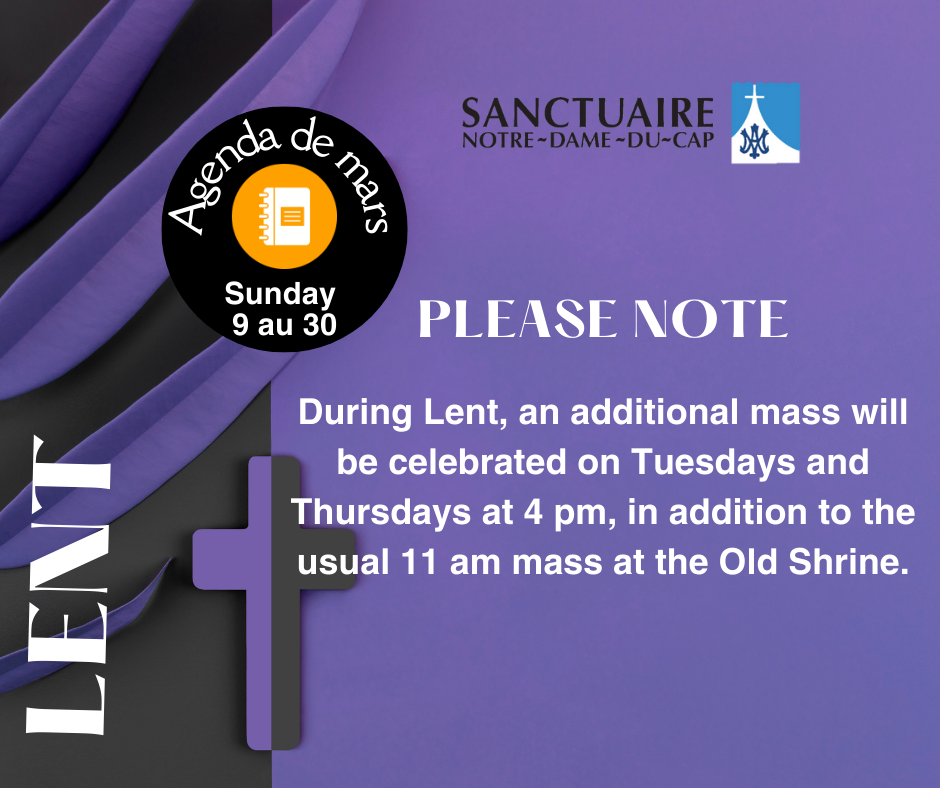 In addition, from 9 March to 30 March, during Lent an additional mass will be celebrated on Tuesdays and Thursdays at 4 pm, in addition to the usual 11 am mass at the Old Shrine.