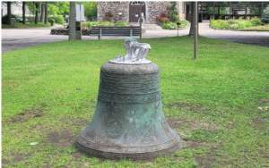 One of the four 1880 church bells, on display in the Shrine gardens.