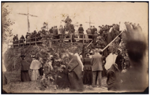 This photo, taken around 1900-1903, shows the old calvary, replaced in 1938 by the current one.