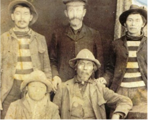 The first Oblates in 1902 in front of the 1861 presbytery, demolished in 1904.