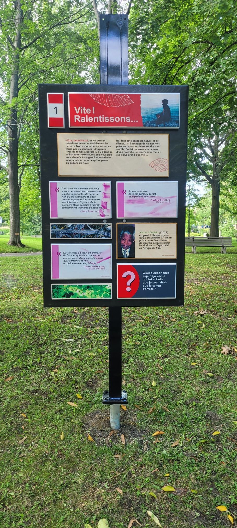 Onze grands panneaux ont surgi dans un sentier près du Sanctuaire.