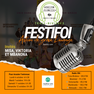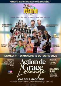 C’est ainsi qu’est né Festifoi. On a choisit un festival autour de la musique car la musique est sans frontière et a ce pouvoir incroyable de rassembler, de toucher et de guérir. Et le Québec, avec sa richesse culturelle, est parfait pour un festival de louange, familial. C’est une première édition et nous pensons le perpétuer. ‘Que tous entendent la louange et voient sa Gloire..’