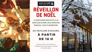 Vous serez seul le soir de Noël? Le Sanctuaire vous invite à réveillonner avec nous le 24 décembre à partir de 18 h au pavillon d’accueil.