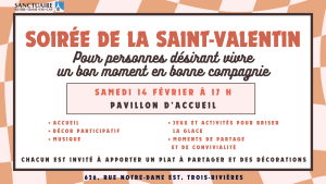 Nous vous invitons à une Soirée de la Saint‑Valentin placée sous le signe de l’amitié, de la douceur et du partage.