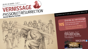 Trois-Rivières, mars 2026 – Le Sanctuaire Notre-Dame-du-Cap invite chaleureusement le public à vivre une expérience artistique et spirituelle unique à l’occasion du temps du Carême et de la Semaine sainte. L’artiste Anne‑Marie Forest présentera son exposition « Passion et Résurrection », une série d’œuvres empreintes de profondeur, de contemplation et d’espérance.